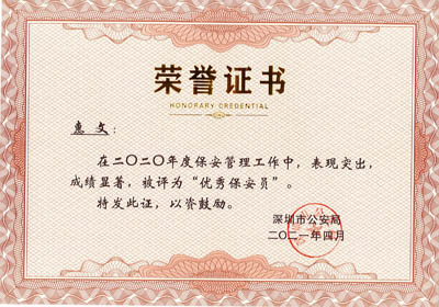 榮獲2017-2023年度深圳市公安局優(yōu)秀保安公司,深圳市保安協(xié)會(huì)常務(wù)理事單位(十大常務(wù)理事單位之一)