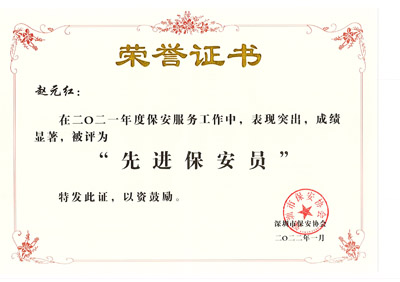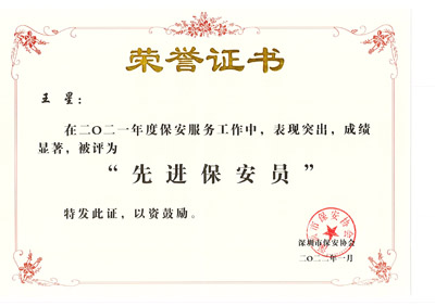 榮獲2017-2023年度深圳市公安局優(yōu)秀保安公司,深圳市保安協(xié)會(huì)常務(wù)理事單位(十大常務(wù)理事單位之一)