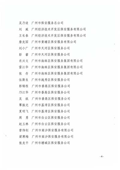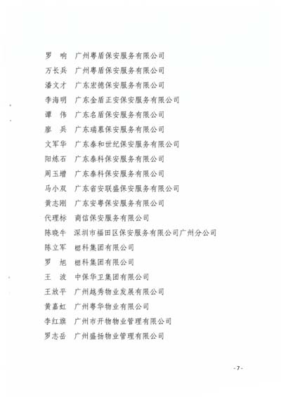 榜樣,積極履行社會(huì)職責(zé),共同推動(dòng)我市保安服務(wù)行業(yè)健康有序發(fā)展,為構(gòu)建和諧平安羊城做出更大的貢獻(xiàn)。